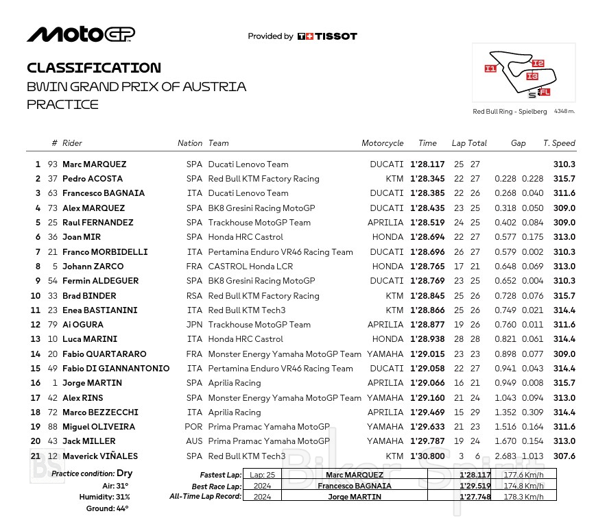 Ο Marc Marquez πρώτος στο Practice στο Red Bull Ring – Ποιοι οδηγοί περνούν στο Q2 – Αποτελέσματα