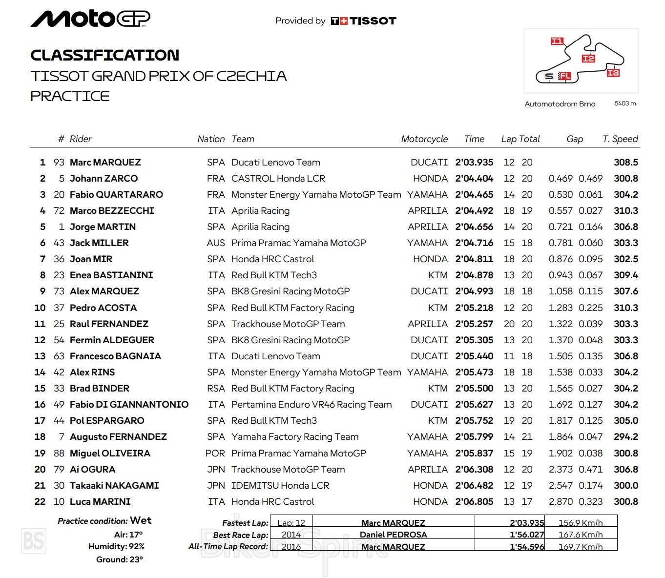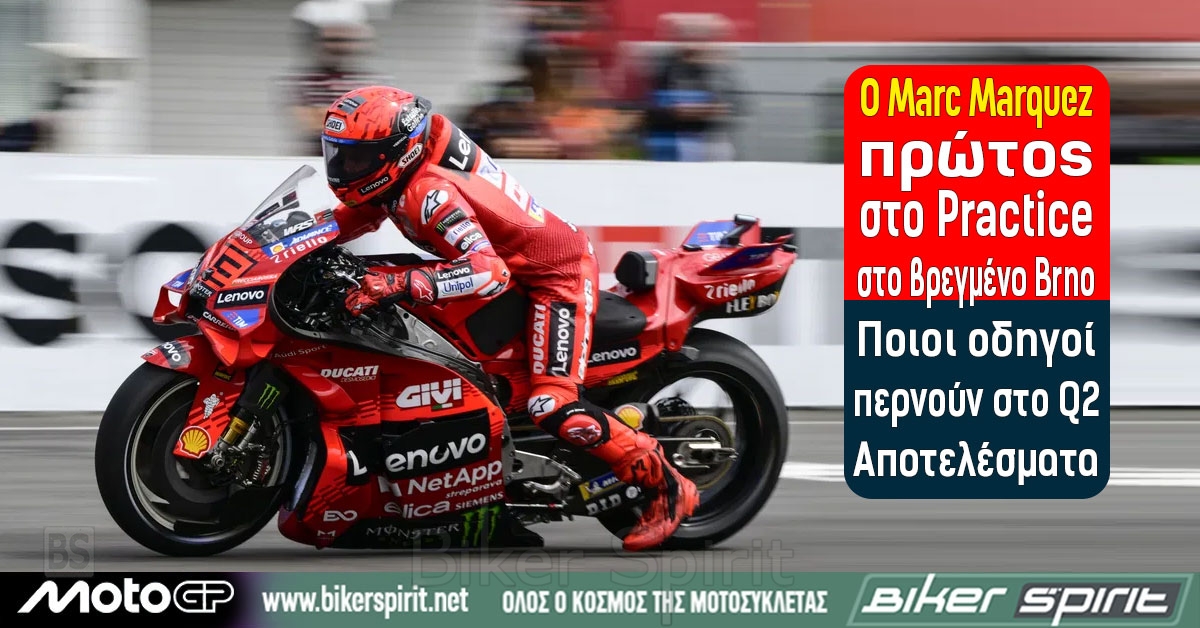 O Marc Marquez πρώτος στο Practice στο βρεγμένο Brnο – Ποιοι οδηγοί περνούν στο Q2 – Αποτελέσματα