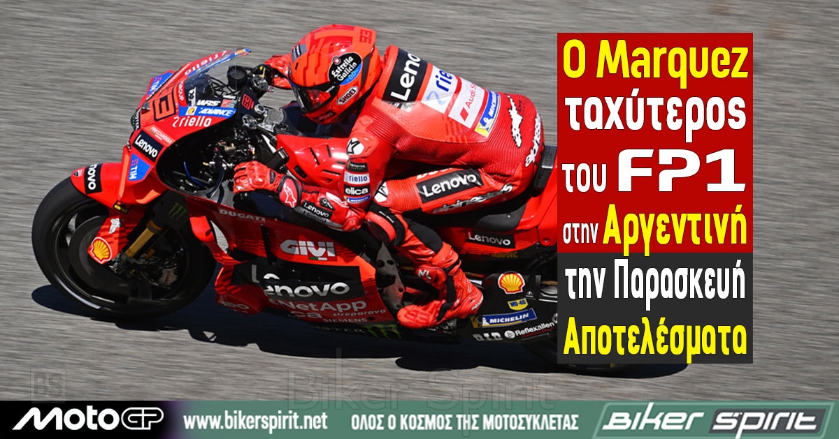 Ο Marc Márquez κυριάρχησε στην πρώτη ελεύθερη δοκιμή FP1 MotoGP στην Αργεντινή για τον 2ο γύρο της σεζόν 2025.