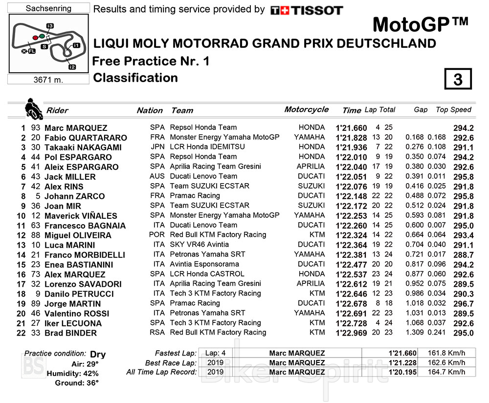 Ο Marc Marquez ταχύτερος στο FP1 στο Sachsenring – Αποτελέσματα – Χρόνοι