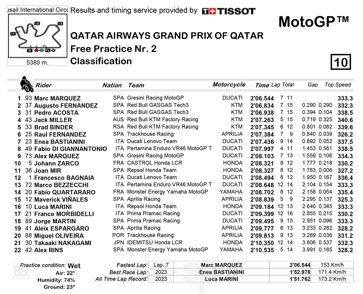 O Marc Marquez ταχύτερος στο βρόχινο FP2 της Παρασκευή στο Qatar – Αποτελέσματα