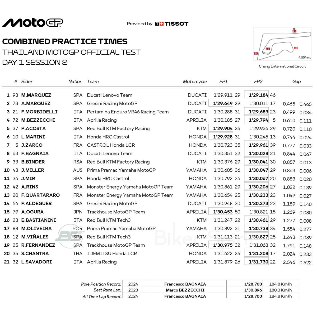 Η πρώτη από τις δύο ημέρες δοκιμής του MotoGP στο Chang International Circuit, η τελευταία επίσημη δοκιμή της σεζόν πριν από την έναρξη του πρωταθλήματος, μόλις τελείωσε με τον οκτώ φορές παγκόσμιο πρωταθλητή στην κορυφη!