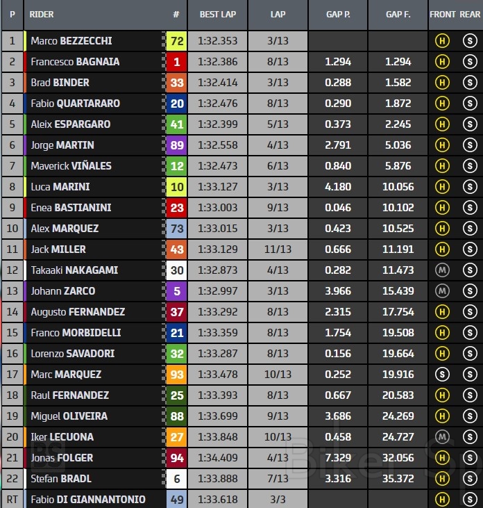 Από την αρχή του 8ου γύρου την Παρασκευή ο Marco Bezzecchi έχει επικρατήσει σε όλα, τις ελεύθερες δοκιμές, την pole position με ρεκόρ και τώρα την πρώτη θέση στον αγώνα SPRINT!