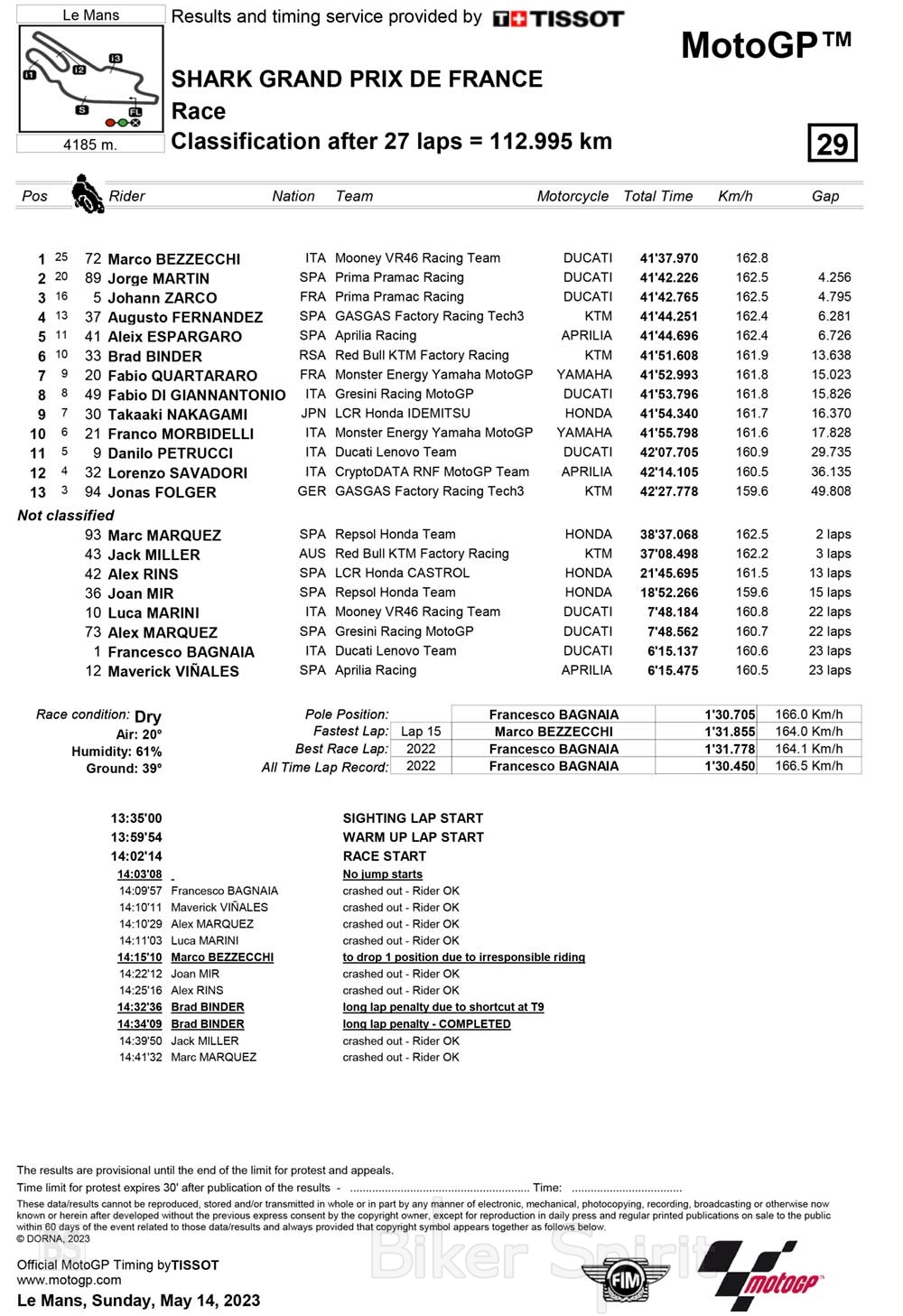 Ένας καυτός αγώνας ήταν ο σημερινός στο Le Mans με νικητή τον Marco Bezzecchi που σημείωσε την 2η του νίκη στο MotoGP.
