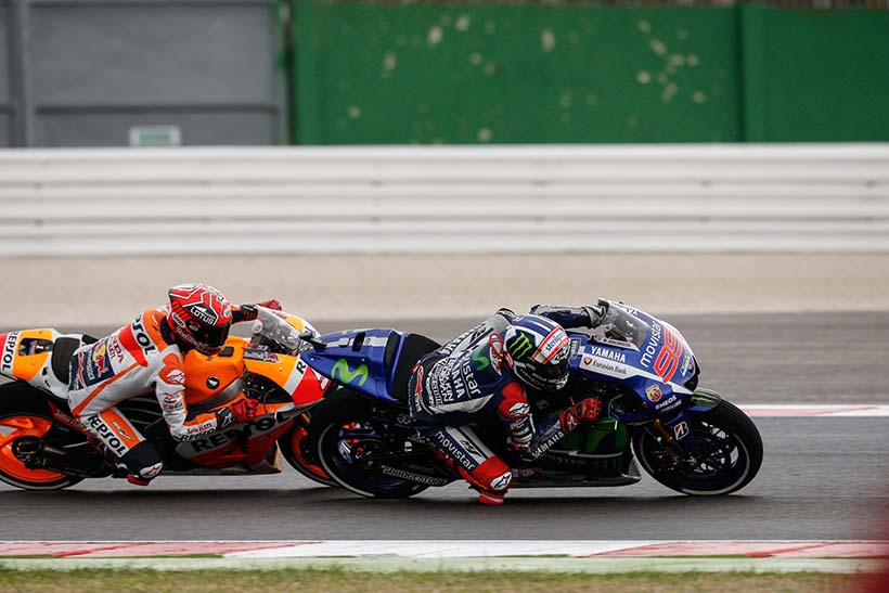 Ο Marquez και ο Lorenzo στριμώχτηκαν στην έξοδο και ο Lorenzo έκανε χειρονομία στο Marquez να «μείνετε ήρεμοι».