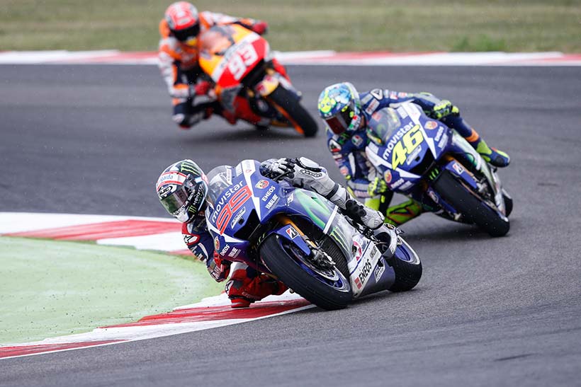 Ο Jorge Lorenzo πηρέ το προβάδισμα από την αρχή, με τον Marquez πίσω του και τον Rossi στην τρίτη θέση. Μικρές μάχες είχαμε αρκετές στους πρώτους γύρους, αλλά το δράμα άρχισε να εξελίσσετε όταν οι λευκές σημαίες έκαναν την εμφάνιση τους. Αυτό σήμανε ότι όλοι οι αναβάτες είχαν τη δυνατότητα να μπουν στα pits και να πάρουν την δεύτερη μοτοσυκλέτα με τα βρόχινα ελαστικά.