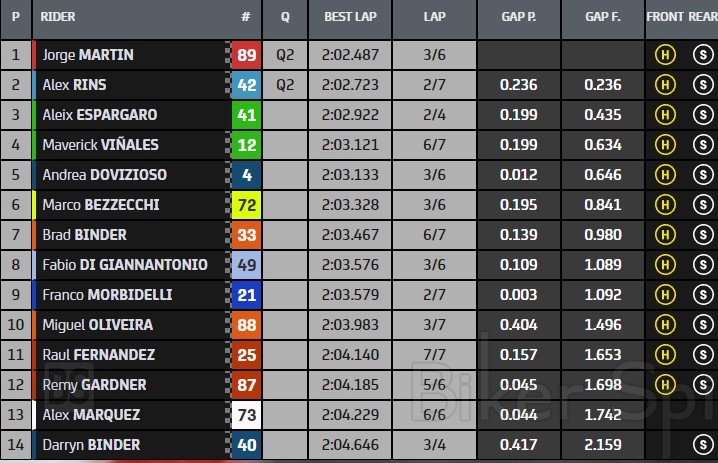 Την πρώτη εξάδα κλείνει συμπληρώνοντας την δεύτερη σειρά ο Fabio Quartararo που είχε πτώση και δεν μπόρεσε να τα δώσει όλα!