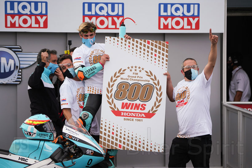 O Jaume Masia με την NSF250RW κατέκτησε μία συναρπαστική νίκη στο Teruel GP του Παγκόσμιου Πρωταθλήματος του 2020 και την 800ή νίκη για αναβάτη της Honda στην ιστορία των Grand Prix.