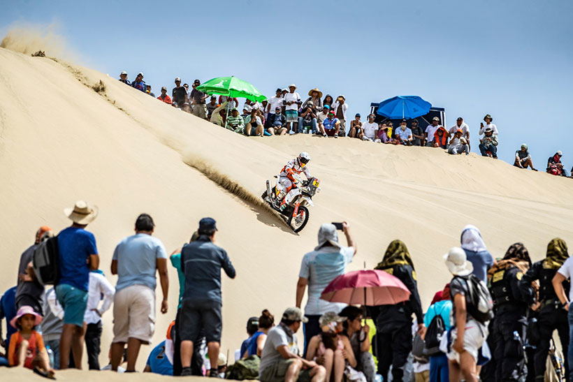 Ο περσινός πρωταθλητής του Dakar, Matthias Walkner, κέρδισε την δεύτερη ειδική, ξεκινώντας από το Pisco 7ος και τελειώνοντας στο San Juan de Marcona, κάνοντας την πρώτη νίκη της KTM στο Dakar 2019. Ο Matthias Walkner κέρδισε τον Αμερικανό Ricky Brabec για μόλις 22 δευτερόλεπτα. Ο κάτοχος του τίτλου έστειλε έτσι ένα ισχυρό μήνυμα στους αντιπάλους του.