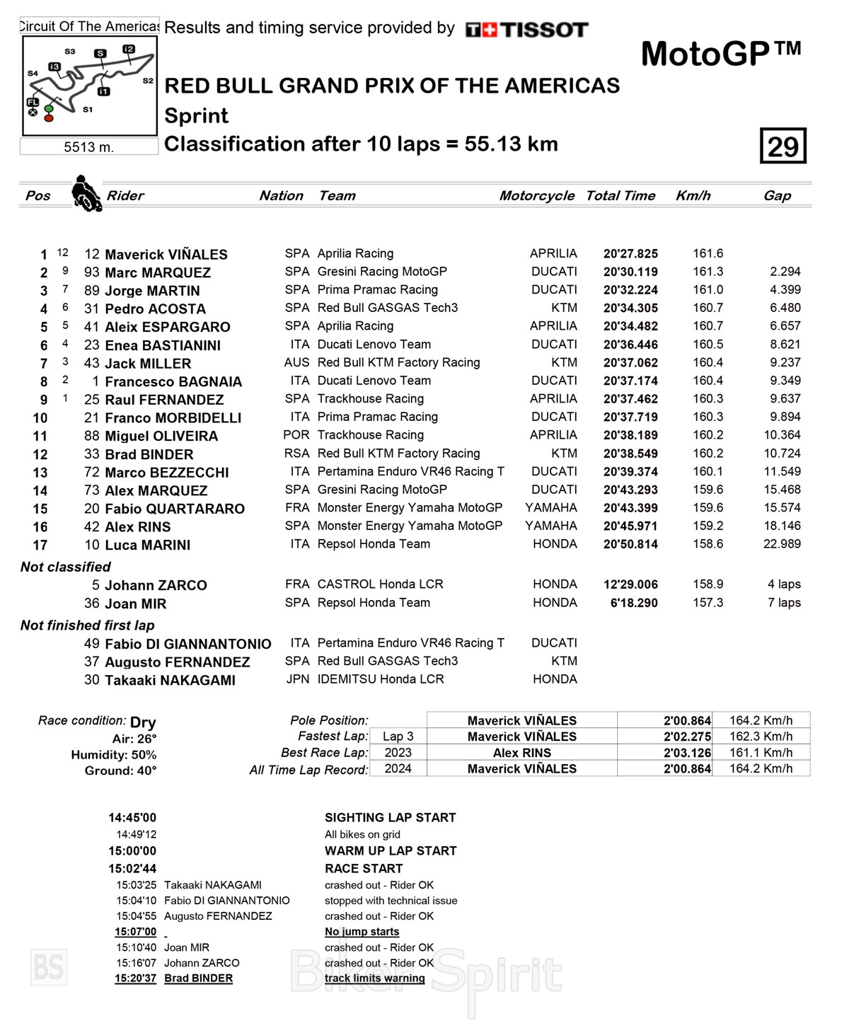 Αφού κατέκτησε την pole position, ο Maverick Vinales κερδίζει επίσης τον αγώνα σπριντ του Grand Prix της Αμερικής, τον τρίτο γύρο του MotoGP 2024