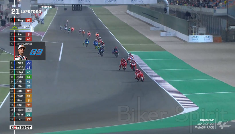 O Jorge Martin έκλεισε την 15αδα που παίρνει βαθμούς και παρόλο που ξεκίνησε από την 14η θέση, έκανε μια φοβερή εκκίνηση και βρέθηκε στην 4η θέση, αλλά δεν κατάφερε να κρατηθεί στην κορυφή!
