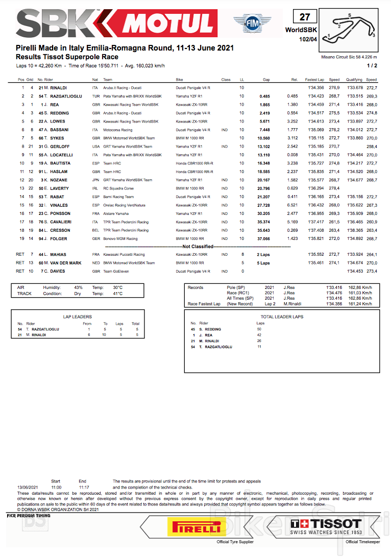 Από εκεί και πέρα ο Ιταλός δεν έχασε ξανά το προβάδισα και πήρε την τρίτη νίκη της καριέρας του στο WSBK.