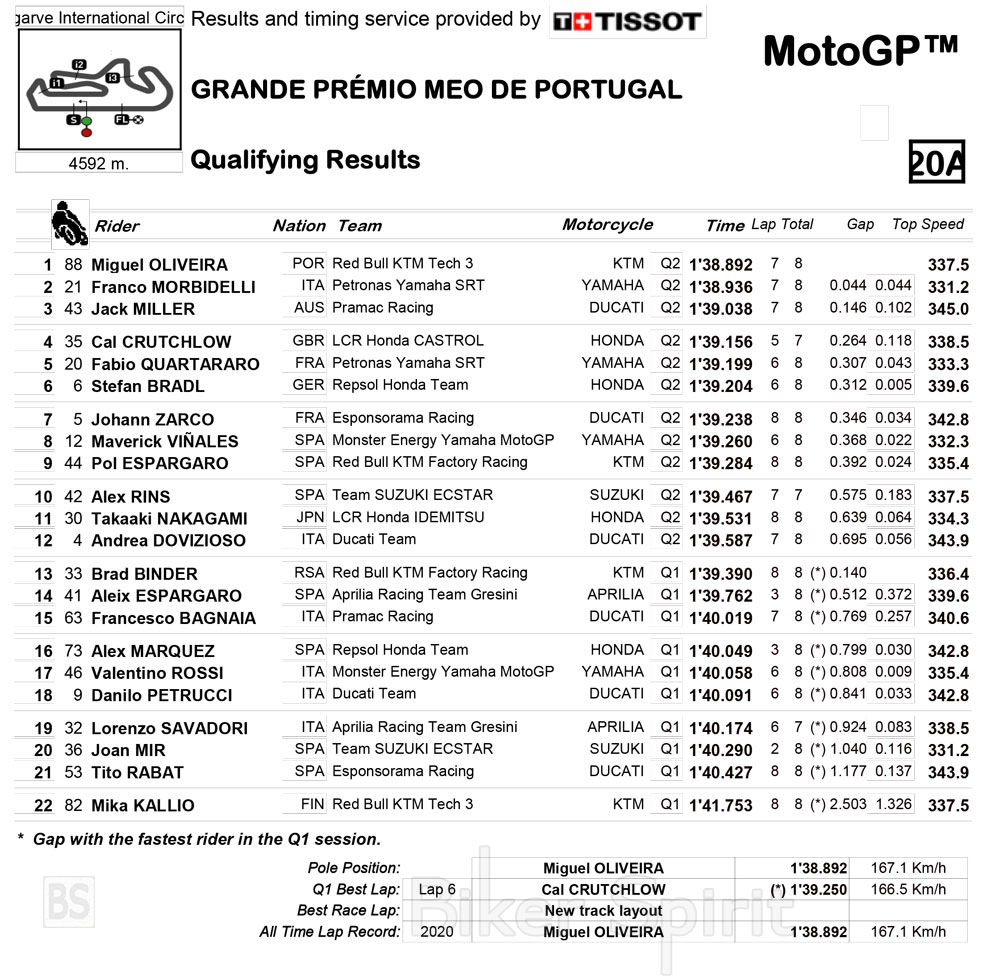 Ο Miguel Oliveira κέρδισε την τελευταία pole position του 2020 στο Portimao – χρόνοι