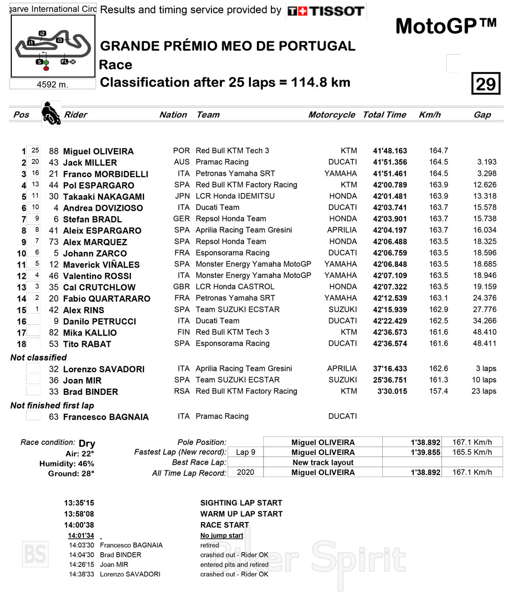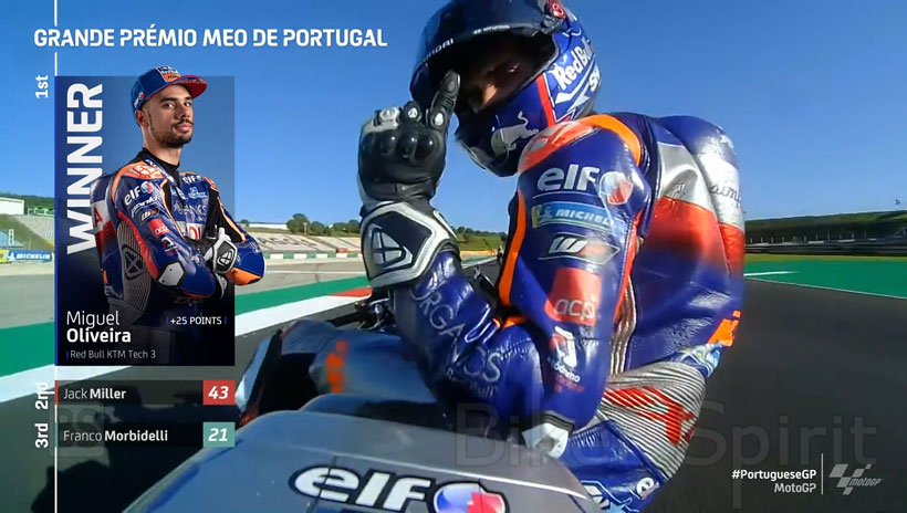 Ο Miguel Oliveira είναι ο τελευταίος νικητής φέτος και ο πρώτο Πορτογάλος που κερδίζει 2η φορά σε GP, επίσης είναι ο πρώτος Πορτογάλος που κερδίζει μια pole και τον αγώνα στο GP, αλλά και το Portimao σφράγισε την πρώτη νίκη σε αυτή την πίστα!
