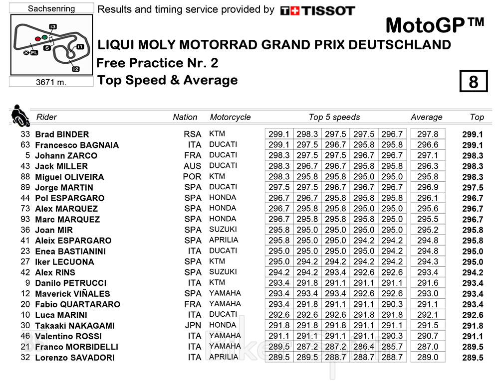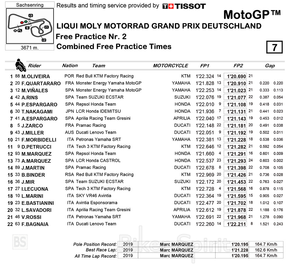 Ο Miguel Oliveira έγραψε τον καλύτερο χρόνο στα δευτερά ελευθέρα δοκιμαστικά FP2 του Grand Prix του Sachsenring, για τον 8ο γύρο του Παγκοσμίου Πρωταθλήματος MotoGP 2021.