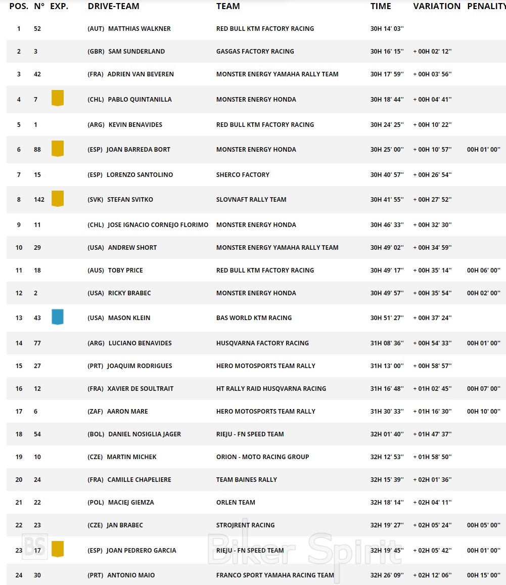 Η κορυφαία τριάδα είναι ίδια με σήμερα το πρωί, αλλά με διαφορετική σειρά και είναι η πρώτη φορά που η KTM ηγείται στην 44η έκδοση του Dakar.