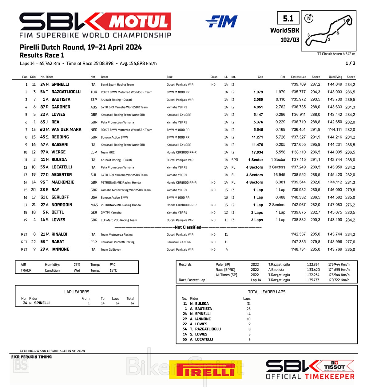 Ο Nicholas Spinelli κερδίζει τον 1ο αγώνα του Ολλανδικού αγώνα, για τον 3ο γύρο του Παγκοσμίου Πρωταθλήματος WSBK 2024.