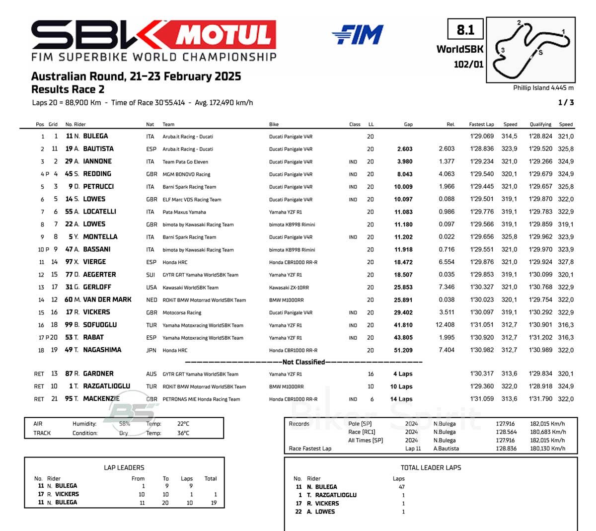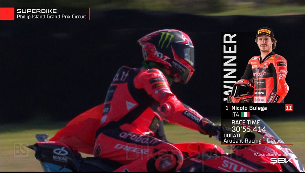 Τρίτη συνεχόμενη νίκη για τον Nicolo Bulega που το καταφέρνει για πρώτη φορά, ενώ ο Razgatlioglu αναγκάζεται να εγκαταλείψει με μηχανικό πρόβλημα και ένα ξέσπασμα θυμού μπροστά στην κάμερα!