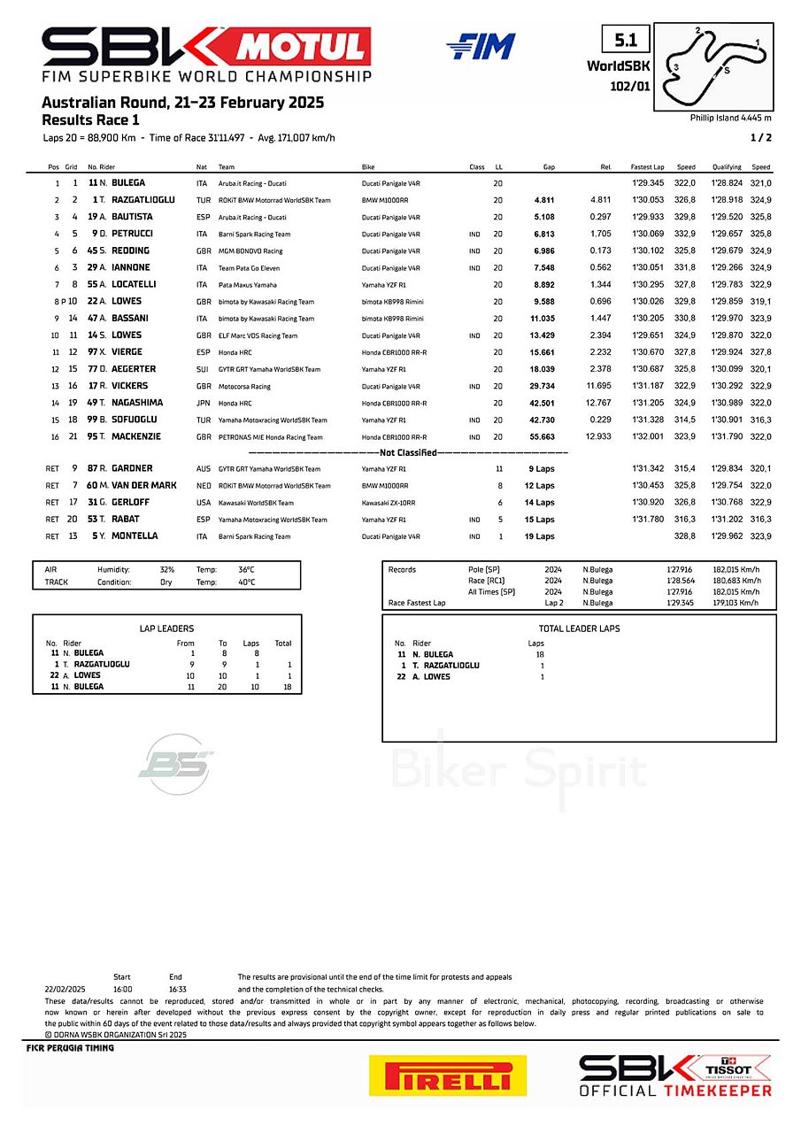 1 11 BULEGA Nicolo Ducati Panigale V4R LEAD LEAD 1’29.345 322