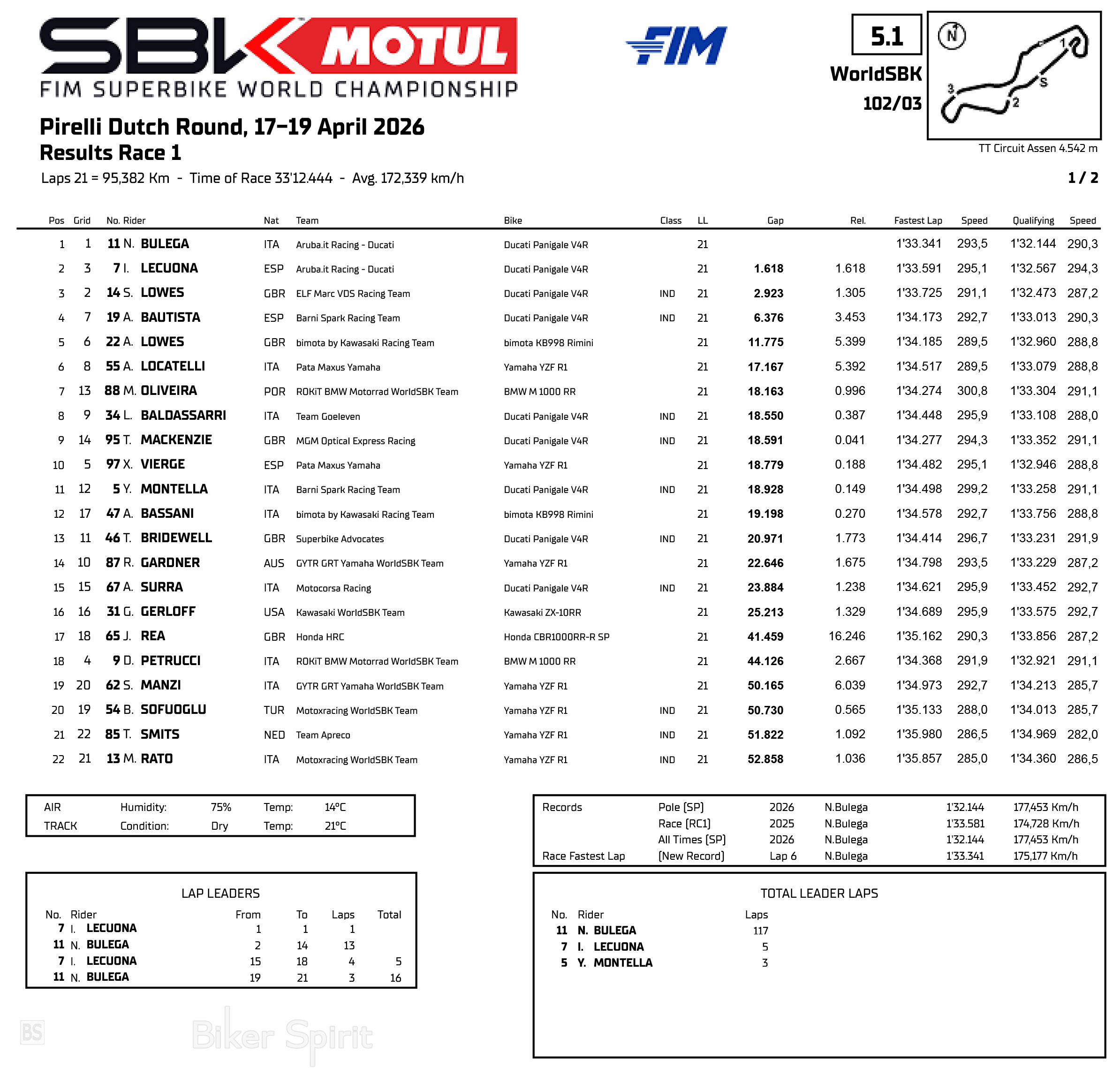 Ο Nicolo Bulega συνεχίζει το σερί νικών του νικόντας τον 1ο αγώνα στο Assen – Iker Lecuona και Sam Lowes στο βάθρο – Αποτελέσματα