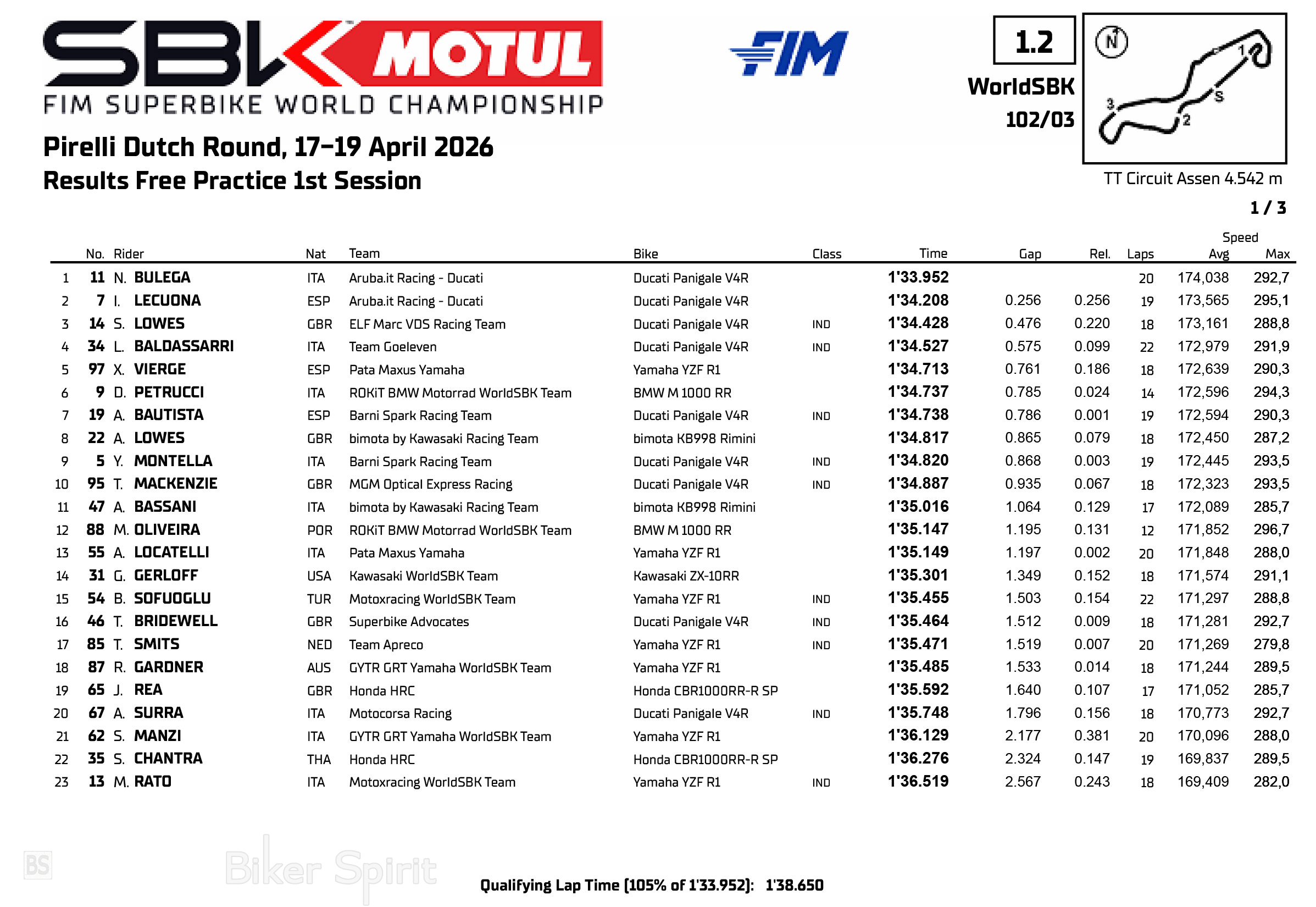 Another solid lap time set by the Championship Leader, @nbulega 🔥💨#DutchWorldSBK 🇳🇱 pic.twitter.com/70Sj4O5Wbh