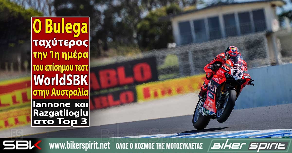 Η πρώτη ημέρα του τελικού επίσημου τεστ στην πίστα του Phillip Island της Αυστραλίας για το Superbike World Championship τέλειωσε με την ισχυρή εμφάνιση από τους αναβάτες της Ducati, που πήραν τέσσερις από τις 5 κορυφαίες θέσεις με τον Nicolo Bulega (Aruba.it Racing – Ducati) ταχύτερο της ημέρας!
