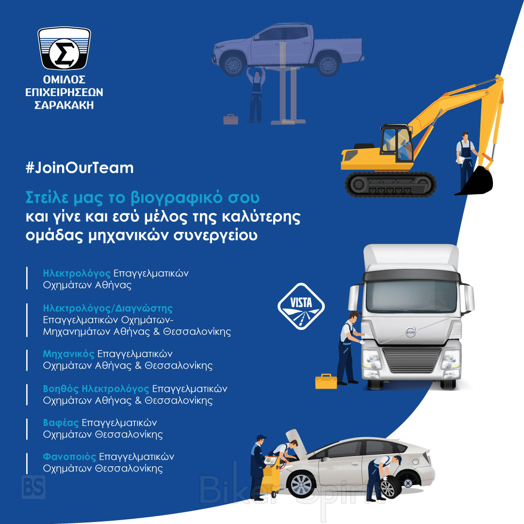 Για να δείτε αναλυτικά τις ανοιχτές θέσεις εργασίας και να ενταχθείτε στην βραβευμένη ομάδα των μηχανικών συνεργείου του Ομίλου, επισκεφθείτε τη σελίδα http://bit.ly/3tQ1Ir1 και στείλτε το βιογραφικό σας.