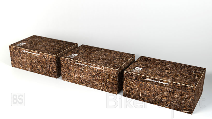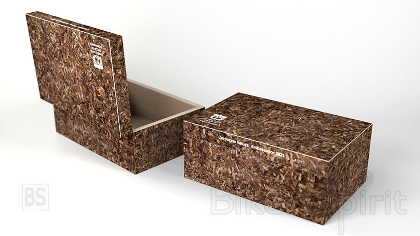Ο Όμιλος Επιχειρήσεων Σαράκακη έχοντας θέσει ως στόχο την μείωση του περιβαλλοντικού του αποτυπώματος, ανέθεσε την κατασκευή των Βραβείων στην εταιρεία PHEE που ειδικεύεται στην ανάπτυξη σύνθετων υλικών φυτικής προέλευσης τα οποία έρχονται να υποκαταστήσουν συμβατικά υλικά που επιβαρύνουν το περιβάλλον και την ανθρώπινη υγεία.