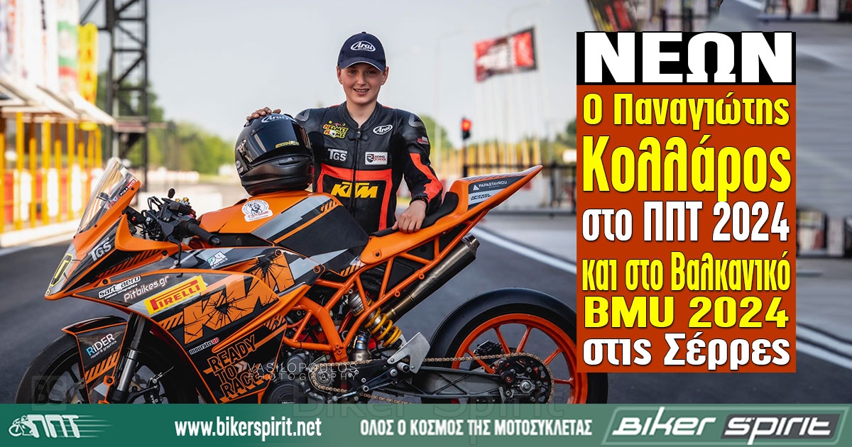 Ο Παναγιώτης Κολλάρος από τους νεότερους αναβάτες στο Πρωτάθλημα BMU Championship 2024 , μιας που είναι 13 ετών, στον τρίτο αγώνα της χρονιάς που έγινε το Σάββατο 1/6/2024 στην Κατηγορία SSP300 τερμάτισε στην 5η θέση ΓΕΝΙΚΗΣ, με μοτοσυκλέτα KTM RC390 κάνοντας νέο προσωπικό Ρεκόρ με χρόνο 1:26:391 .
