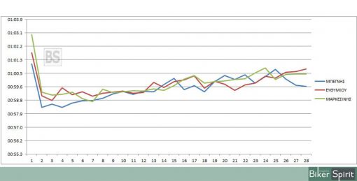 Αξίζει να σημειωθεί πως όλοι οι οδηγοι εκτός του Δαραμούση, είχαν τον καλύτερο τους γύρο μέσα στα 58 δευτερόλεπτα, από τον Παρασκευόπουλο που έκανε τον ταχύτερο γύρο του αγώνα με 00:58.005, μέχρι τον Δημήτρη Πρόϊο που έκανε ταχύτερο γύρο 00:58.941.