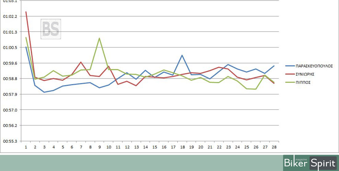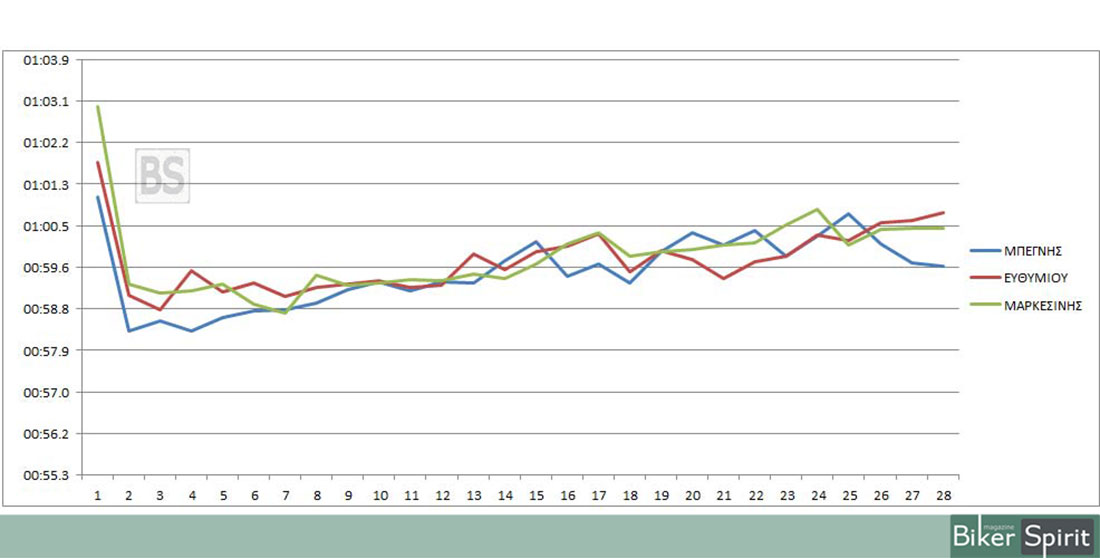 Στην 4η θέση τερματισε ο Σωτήρης Μπεγνής που φάνηκε να μην μπορεί να ακολουθήσει τον ρυθμό των πρώτων.