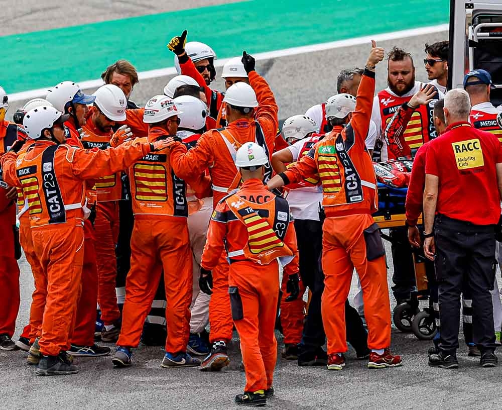 Δεν είχε ενοχλήσεις στο κεφάλι, στο στήθος ή στην κοιλιά σε καμία στιγμή. «Είχε τις αισθήσεις του και μπορούσε να προσανατολιστεί», διαβεβαίωσε ο γιατρός του MotoGP.