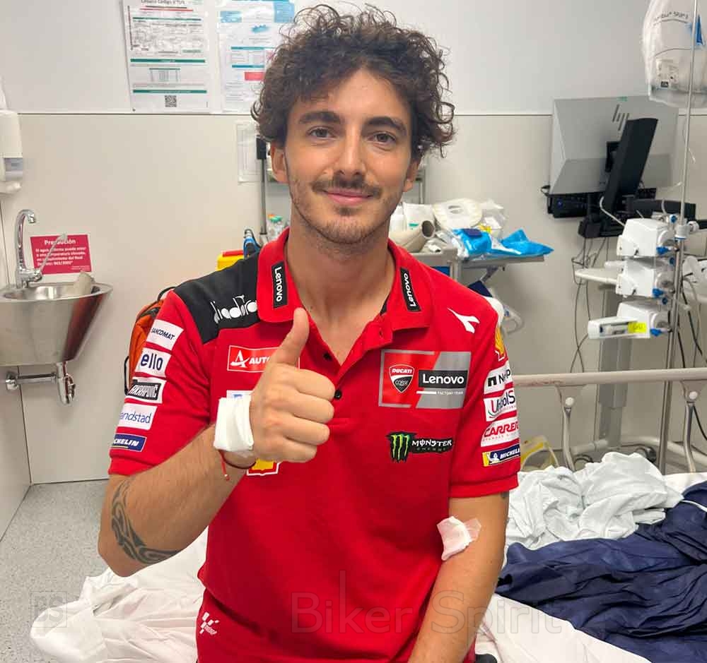 Το βράδυ η Ducati ανακοίνωσε επίσημα: «Ο Bagnaia υπέστη πολλαπλούς μώλωπες, αλλά δεν υπέστη κατάγματα και μπορεί να ξεκινήσει το ταξίδι για το σπίτι με την ομάδα.»