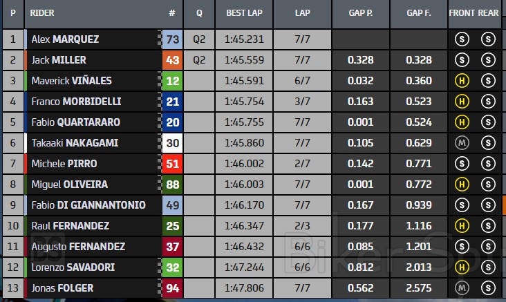 Από την 4η θέση ανοίγοντας την δεύτερη σειρά θα εκκινήσει ο Jack Miller, με το πρώτο Red Bull KTM Factory και χρόνο 1’45.186, μπροστά από δυο Ducati αυτά των Jorge Martin της Prima Pramac Racing και Marco Bezzecchi της Mooney VR46 Racing Team