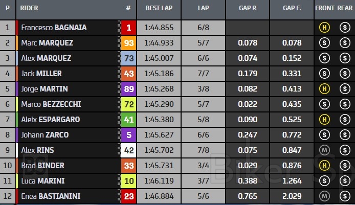 Από την 10η θέση στην τέταρτη σειρά θα ξεκινήσει ο Brad Binder που είχε μια πτώση στο Q, μπροστά από τον Luca Marini και τον Enea Bastianini, που κλείνει την πρώτη δωδεκάδα!