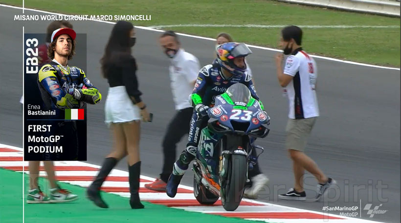 Στην 3η θέση τερμάτισε ο αναβάτης που έκλεψε την παράσταση σήμερα, ο Enea Bastianini, ξεκινώντας από την 12η θέση, που έκανε έναν καταπληκτικό αγώνα, γράφοντας πάρα πολλές φορές τον ταχύτερο γύρο! Για το “Bestia” είναι το πρώτο βάθρο στην Top Class στη ντεμπούτο σεζόν, ένα εξαιρετικό αποτέλεσμα, ολοκληρωμένο με τον ταχύτερο γύρο του αγώνα.