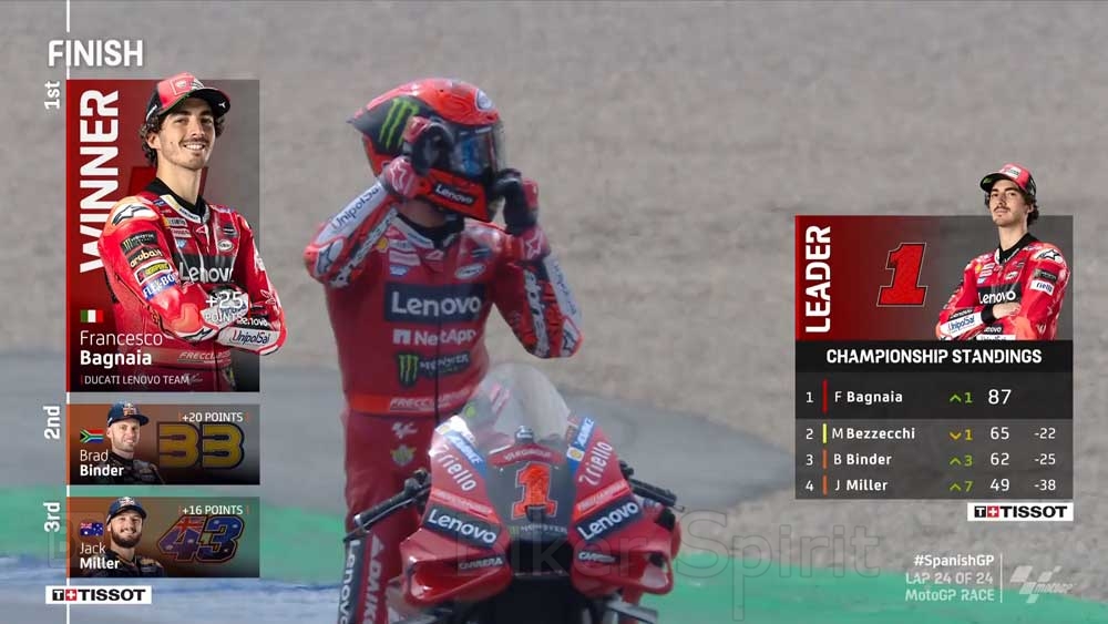 Ο Bagnaia κέρδισε το Ισπανικό Grand Prix της μεγάλης κατηγορίας MotoGP, για τον τέταρτο γύρο του Παγκοσμίου Πρωταθλήματος 2023.