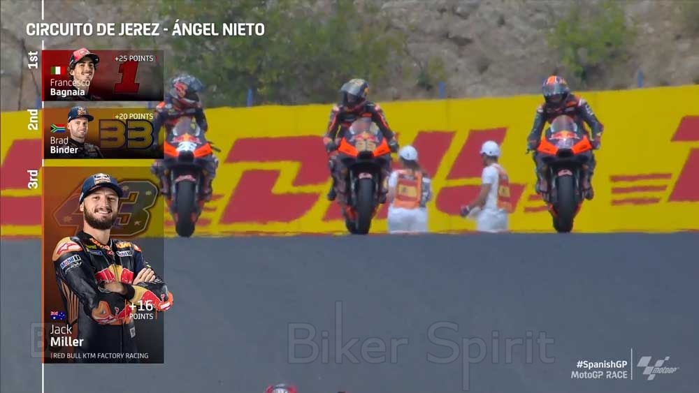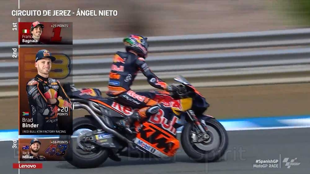 Τα δυο KTM που πρωταγωνίστησαν στον πρώτο κομμάτι του αγώνα με τους Binder και Miller έκλεισαν το βάθρο με την 2η και 3η θέση αντίστοιχα, δείχνοντάς μια φοβερή δύναμη στην Jerez όλο το διήμερο !