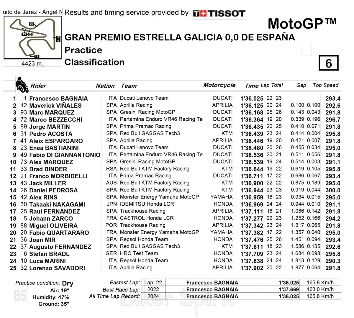 Στο «τοπ 10» που περνά απευθείας στο Q2 συνοπτικά αποτελείτε από τους Bagnaia, Viñales, Marc Márquez, Bezzecchi, Martin, Acosta, Aleix, Bastianini, Di Giannantonio και Alex Márquez.