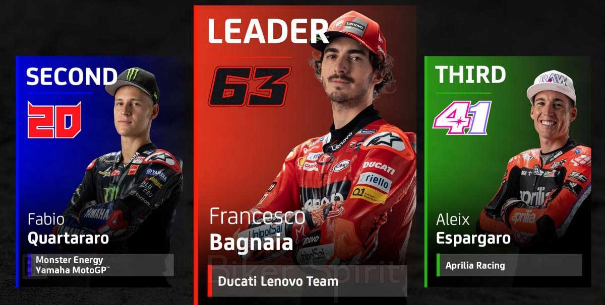 Αυτή τη στιγμή Ο Ιταλός αναβάτης έχει πλεονέκτημα 14 βαθμών από τον Quartararo και 27 από τον Aleix Espargaro.