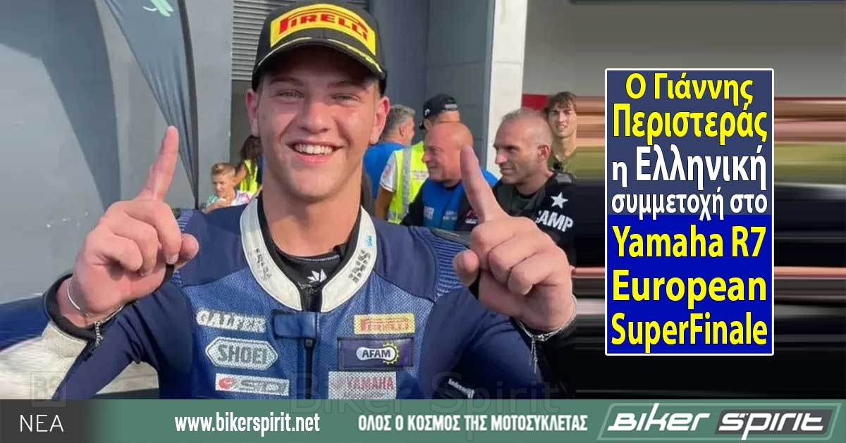 Ο Ευρωπαϊκός Τελικός “Yamaha R7 European SuperFinale”, που ουσιαστικά είναι ο Παγκόσμιος Τελικός των Πρωταθλημάτων της Yamaha R7, θα δει ανάμεσα στους 30 συμμετέχοντες και έναν Έλληνα, τον 19χρονο Γιάννη Περιστερά.