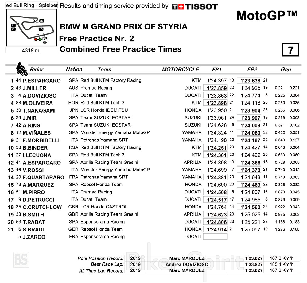 Ο Pol Espargarò με την KTM έγραψε τον καλύτερο χρόνο της δεύτερης περιόδου ελεύθερων δοκίμων του Styrian Grand Prix.