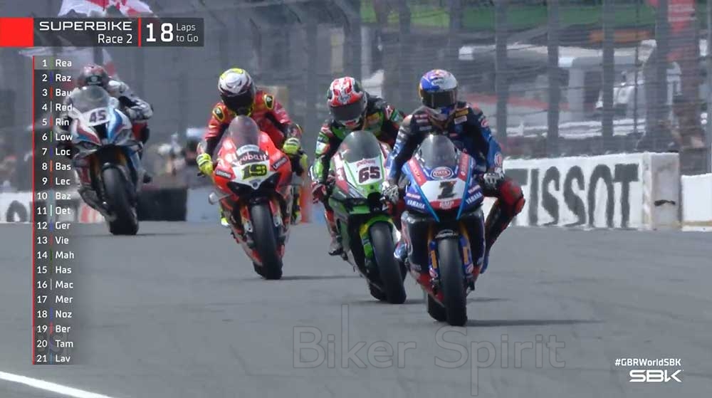 Ο αγώνας 2 στο Donington Park, ήταν ένας ακόμα συναρπαστικός και θεαματικός αγώνας για το Παγκόσμιο Πρωτάθλημα Superbike, με τις μάχες για την πρώτη θέση να κόβουν την ανάσα αναμεσά στους τρεις συνήθεις “υπόπτους” αυτής της σεζόν με Razgatlioglu και Rea να παλεύουν στην κορυφη, ενώ ο Bautista καραδοκούσε στην ρόδα τους προσπαθώντας να μπει αναμεσά τους!