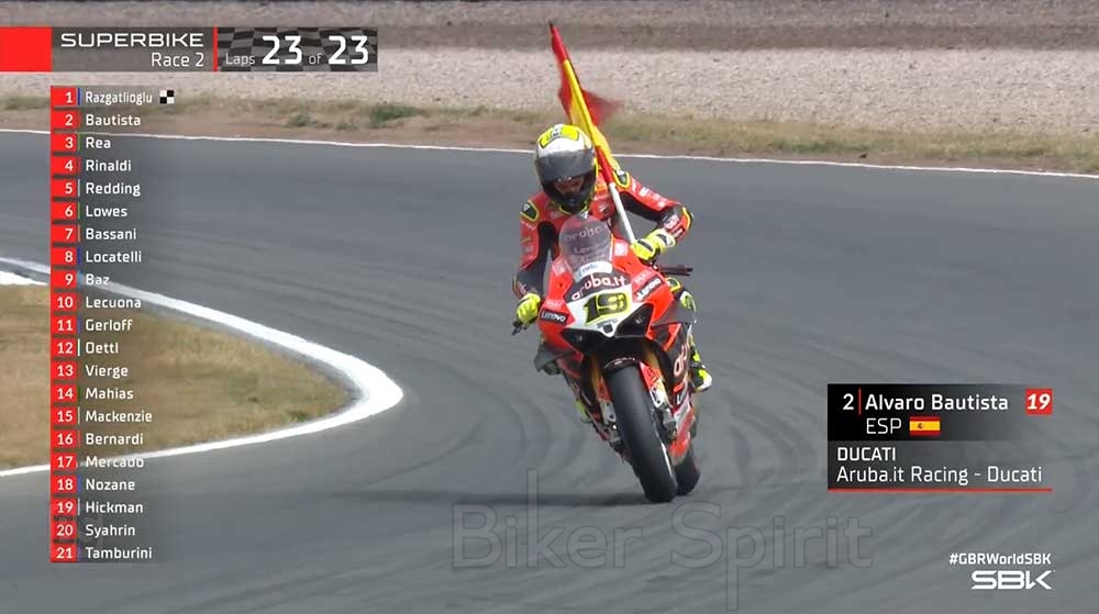 Στην 2η θέση τερμάτισε ο Alvaro Bautista που κατάφερε και πέρασε τον Rea 5 γύρους πριν το τέλος του αγώνα, με τον Βρετανό να μην μπορεί να αντιδράσει!