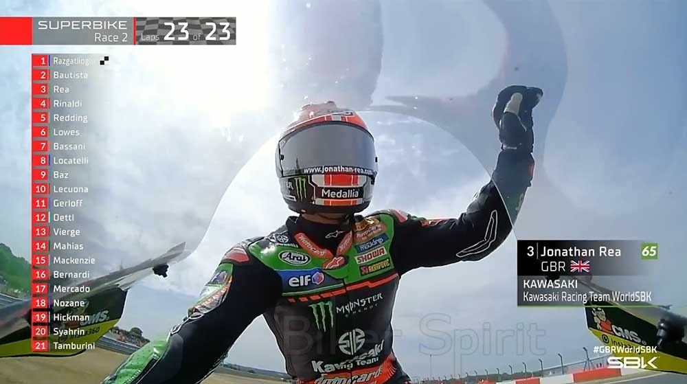 Ο Jonathan Rea τερμάτισε τελικά στην 3η θέση αφού έδειχνε να μην μπορεί να αντιδράσει, μετά από 10 ξέφρενους γύρους που έκανε τα πάντα προσπαθώντας να περάσει στην πρώτη θέση!