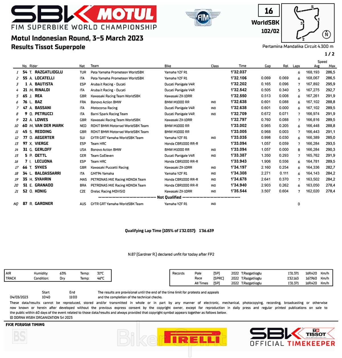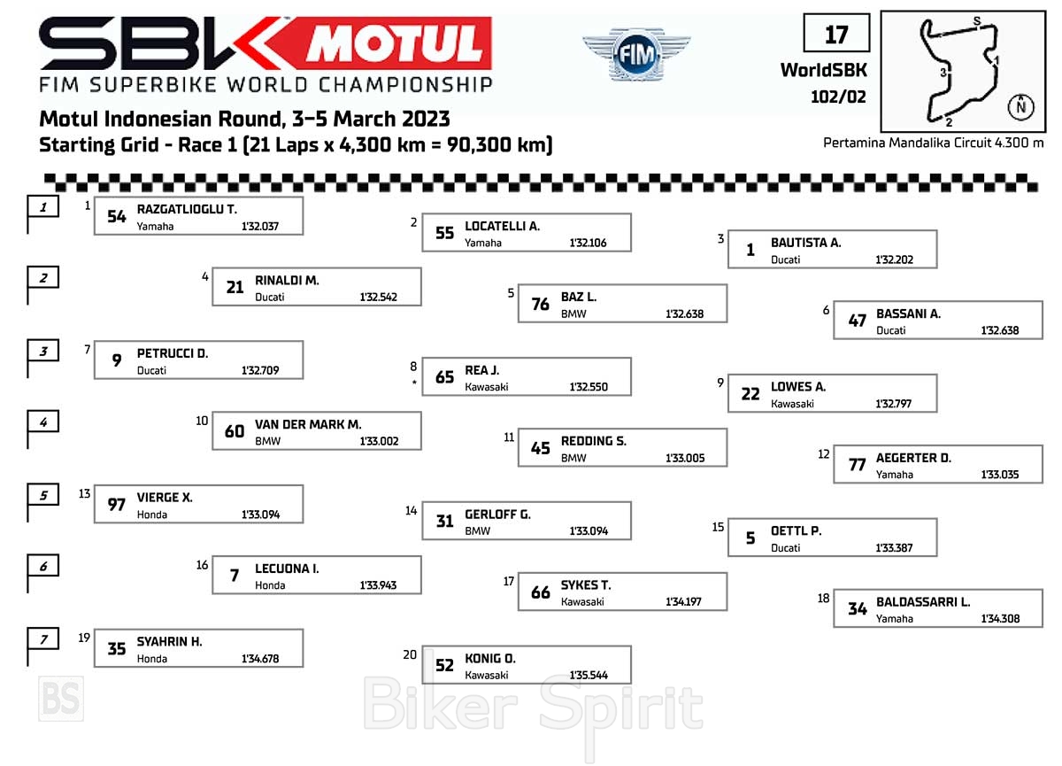 Ο Toprak Razgatlioglu (Pata Yamaha Prometeon WorldSBK) για τρίτη συνεχόμενη φορά στην Mandalika, κερδίζει την pole position , μπροστά από τον ομόστυαλό του, κάνοντας για την Yamaha το 1-2 κάτι που πέτυχε η Yamaha και πάλι μετά από σχεδόν 13 χρόνια.