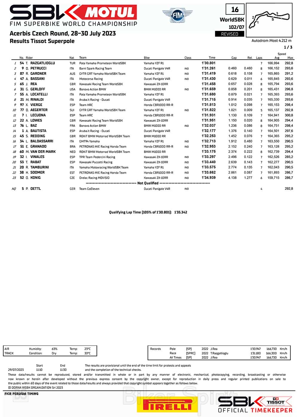 Ο Toprak Razgatlioglu κέρδισε την Pole Position για τον αγώνα της Τσεχίας για τον όγδοο γύρο του Παγκόσμιου Πρωταθλήματος Superbike 2023.
