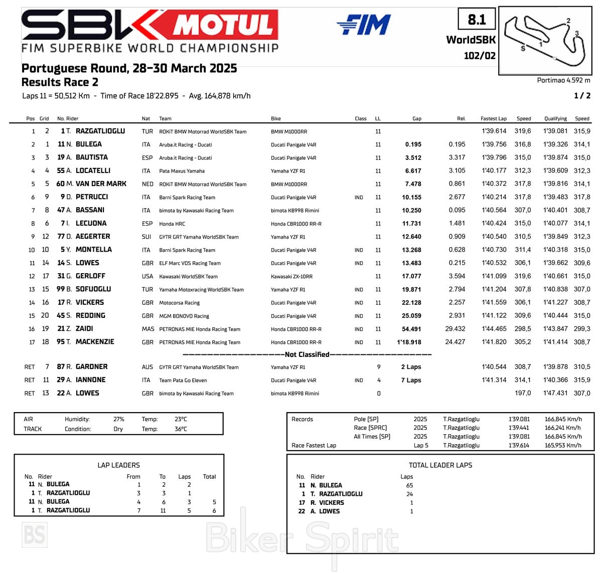Ο Toprak Razgatlioglu έκανε 3 στα 3 κερδίζοντας και τον 2ον αγώνα στο Portimao, μετά τον 1ο αγώνα και τον αγώνα Superpole της Πορτογαλίας, για τον δεύτερο γύρο του παγκοσμίου πρωταθλήματος WSBK του 2025.