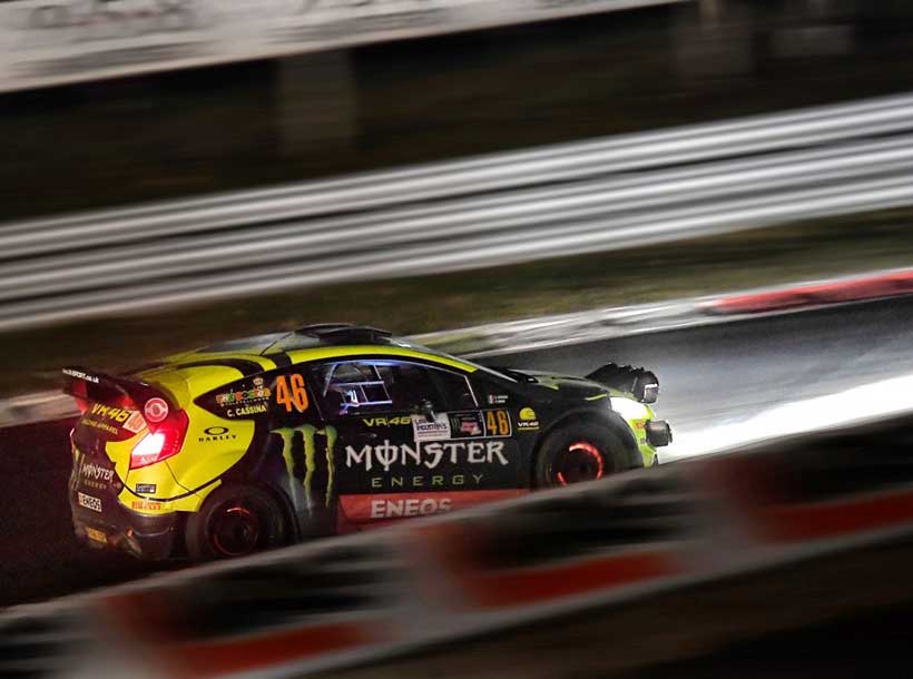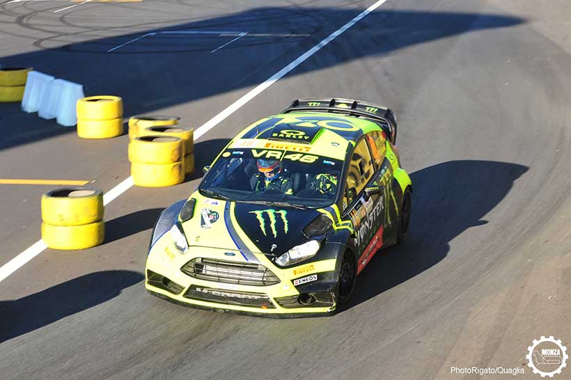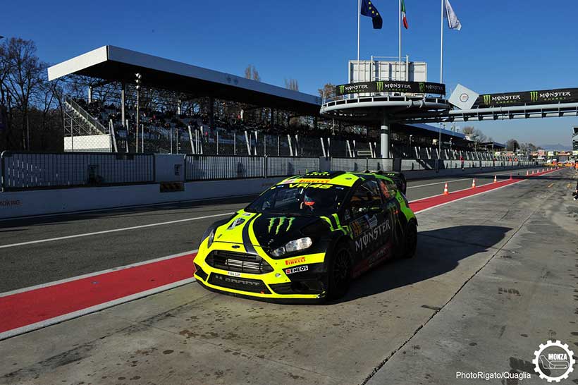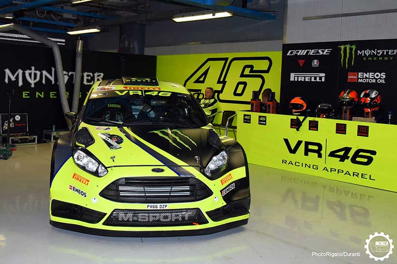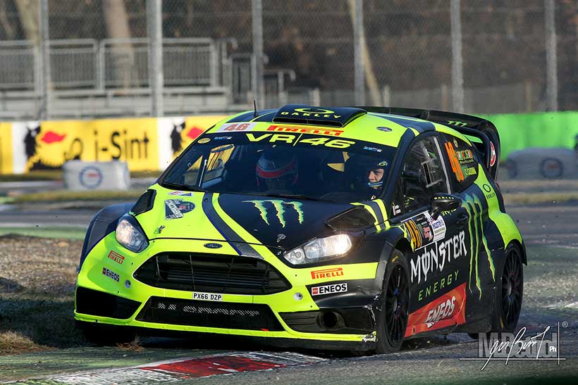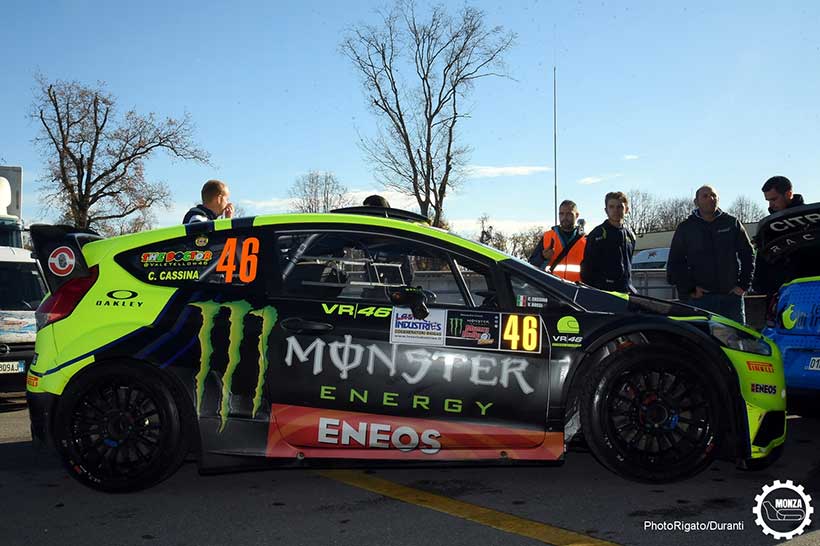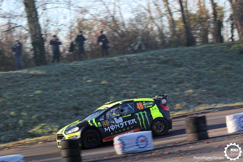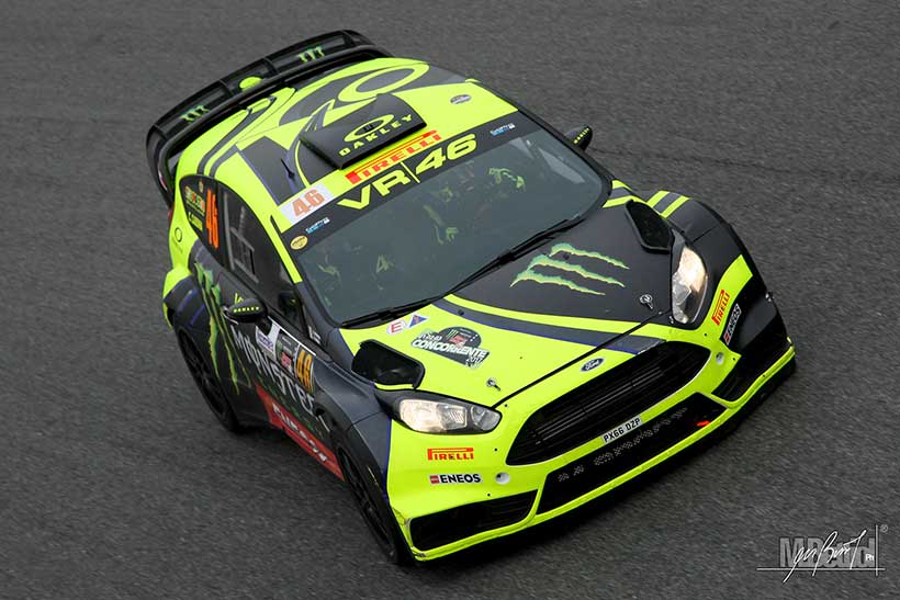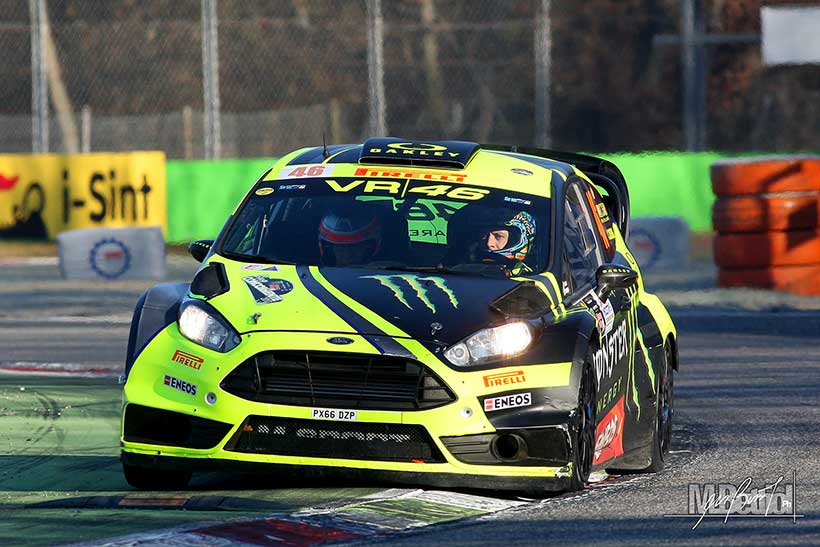 Ο Valentino Rossi με συνοδηγό του τον Carlo Cassina, οδήγησε ένα Ford Fiesta RS WRC που είχε ετοιμάσει η M-Sport σε συνεργασία με την Monster Energy.