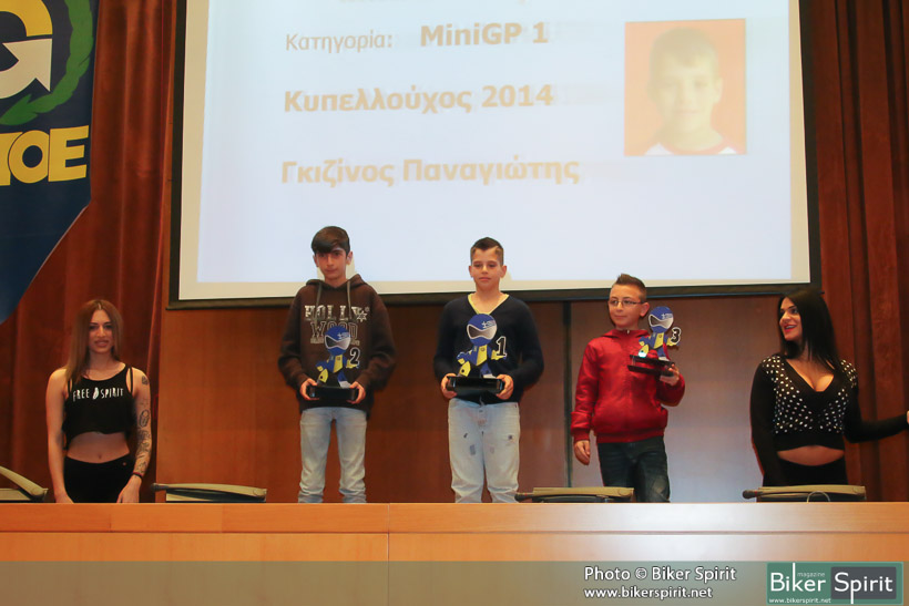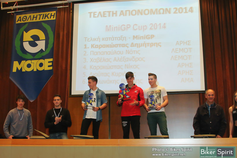 Η εκδήλωση άνοιξε με τις απονομές των κυπέλλων στους διακριθέντες αθλητές στα κάπελα του MiniGP Cup 2014 και του IMR Cup 2014.